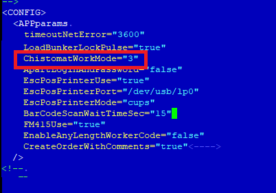 1. Для режима работы без использования пломб, в настройках фала APPparams.xml добавить опцию ChistomatWorkMode=”3”.