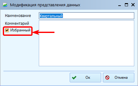 Созданные шаблоны и кубы можно сразу заносить в "избранные" с помощью галочки при сохранении или изменении шаблона.