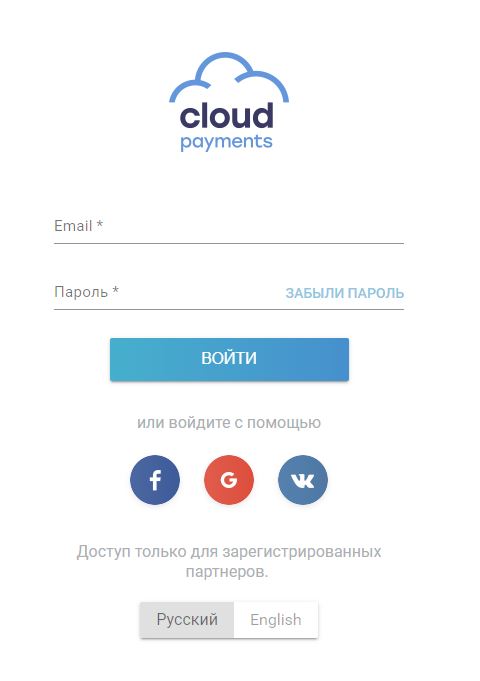Открываем ссылку https://merchant.cloudpayments.ru/login