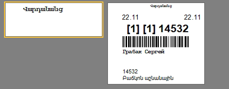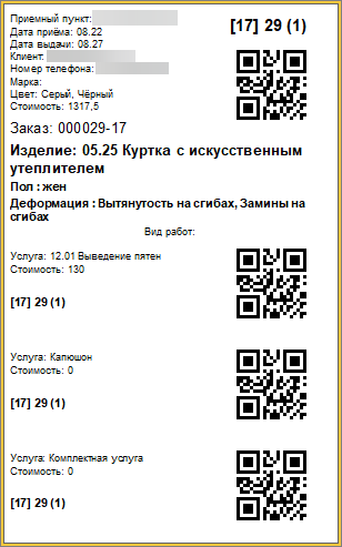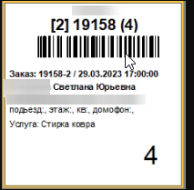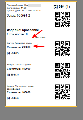 - Короткая бирка с ШК и ценой услуги