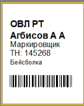 Бирка со складом выдачи и кратким ФИО <hidden>