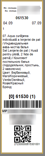 - Длинная бирка с ШК и QR, с выводом допреквизитов Цвет и Бренд, если указаны.