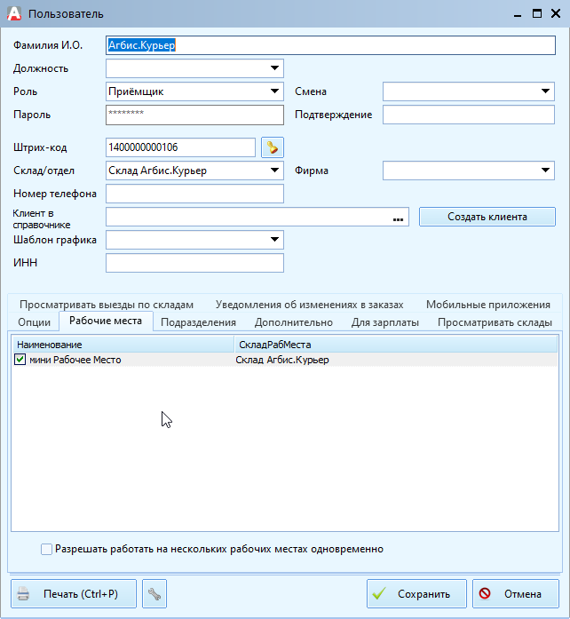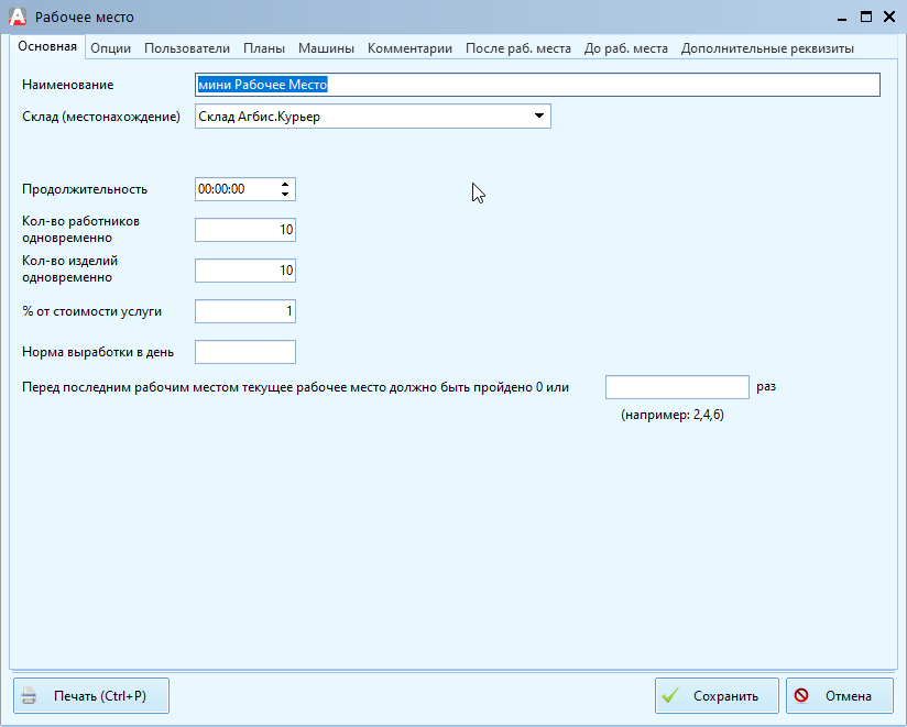 Настроить рабочее место: Агбис.Химчистка\Справочники\Рабочие места\Рабочие места