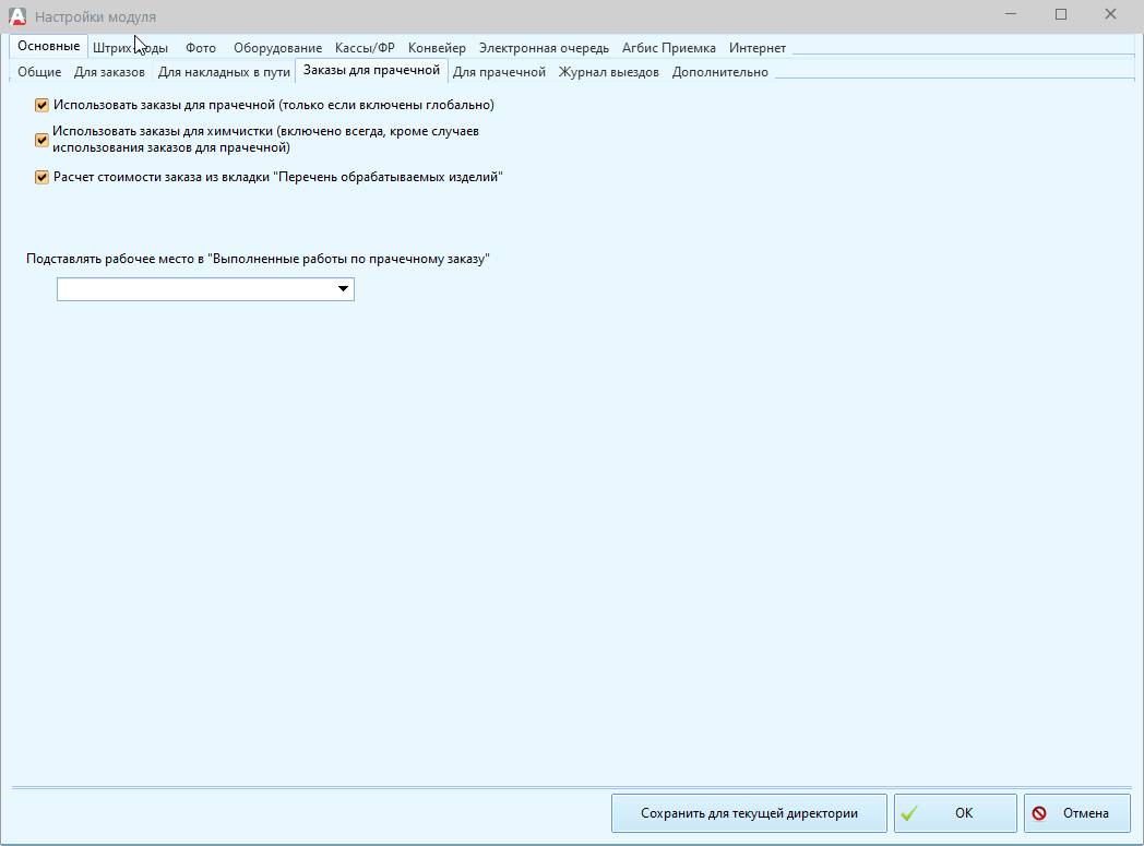 Это откроет возможность оформления прачечных заказов на базе подразделения и локальных ПК, подключенных к нему.