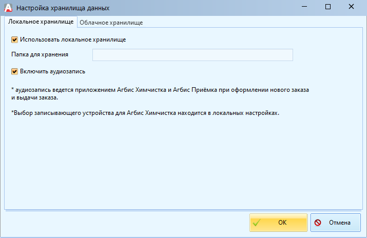 ✓ Использовать локальное хранилище (В текущей версии все записи будут сохраняться на локальном диске компьютера)
