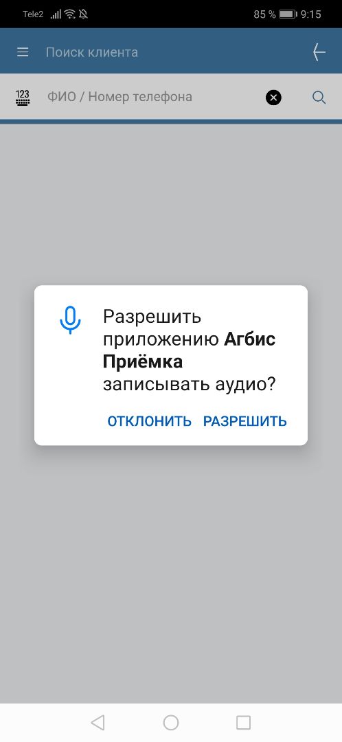 При первом оформлении заказа в Агбис Приёмка, приложение запросит разрешение на запись аудио, необходимо нажать "Разрешить".